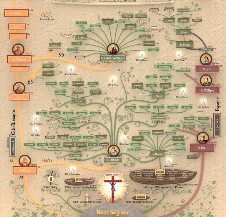 arbre de la Généalogie apostolique des gaules au Ier siècle