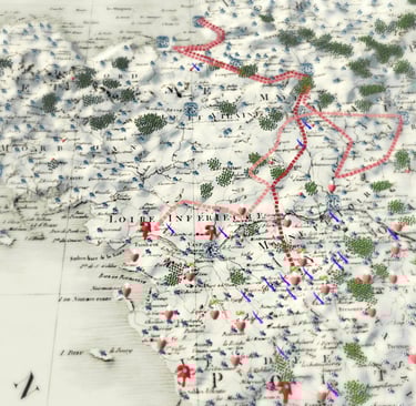Découvrez l'itinéraire de la virée de Galerne, campagne militaire de la guerre de Vendée pendant la Révolution française qui s'est déroulée dans le Maine, en Bretagne, en Normandie et en Anjou.