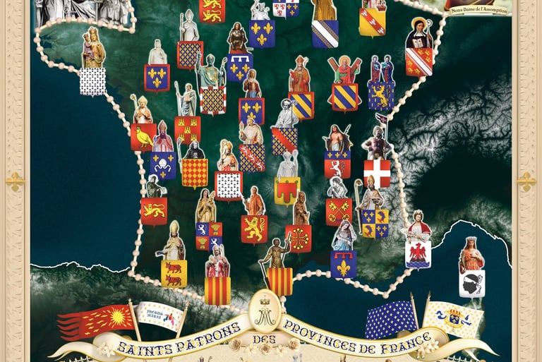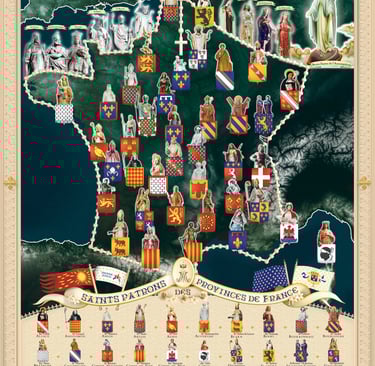 et les saints patrons de France, sont présentés sur cette carte avec les saints patrons des provinces du Royaume de France.